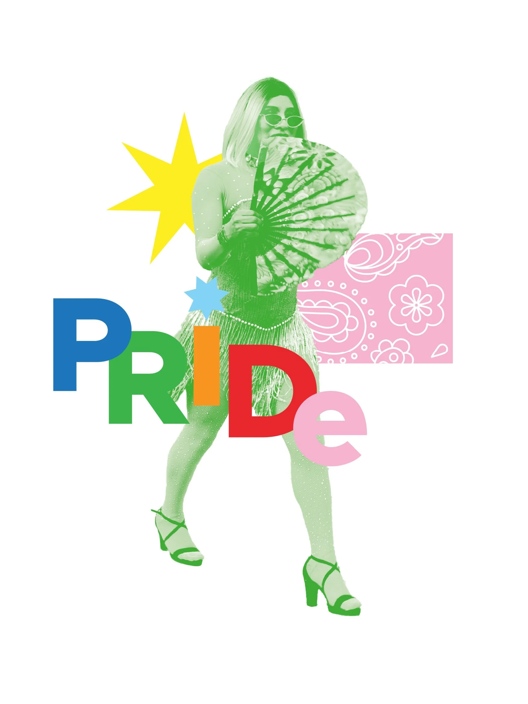I designed a set of limited edition pins that were available for purchase online. I used some of the decorative elements I had already designed for the window clings combined with bespoke text treatments and duotone imagery to create a bold and joyous set of pins in keeping with WorldPride 2025’s brand identity.