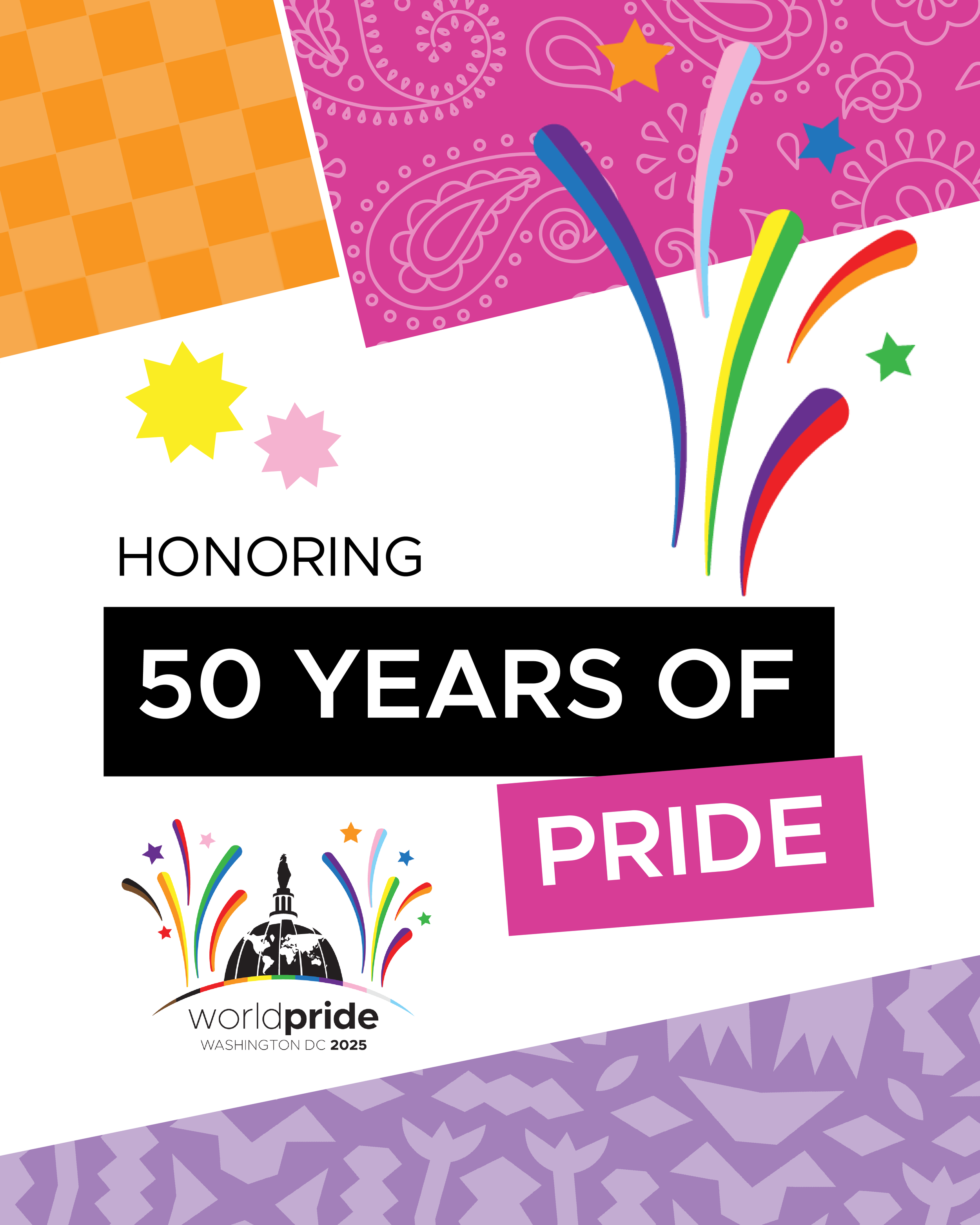 From November 2024-June 2025 I worked as part of a team to design promotional materials, swag and merchandise, environmental graphics and social media graphics for WorldPride 2025, a large-scale LGBTQIA+ event that took place in Washington DC. The designs shown here are ones that I designed and developed based on the pre-existing style guide for WorldPride 2025.